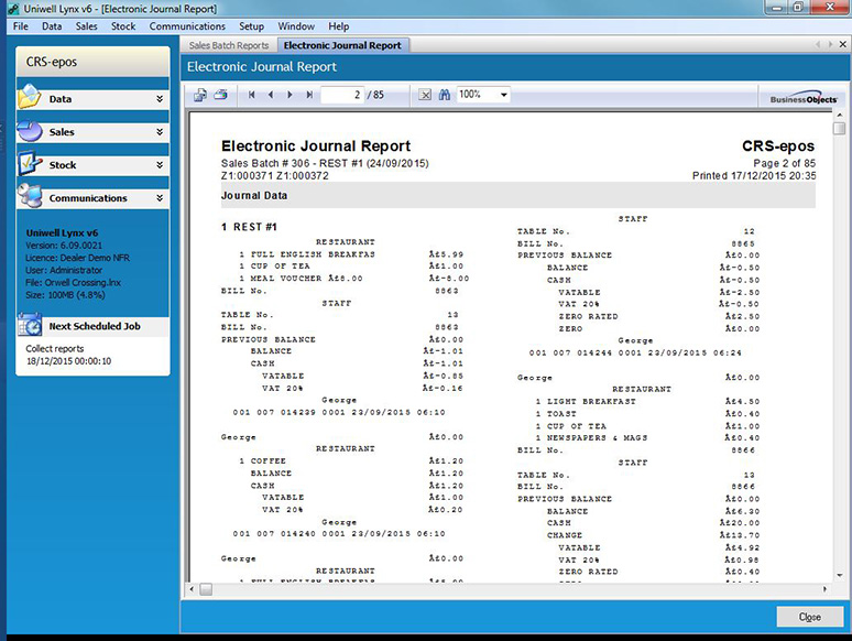 Uniwell Lynx Software from CRS
